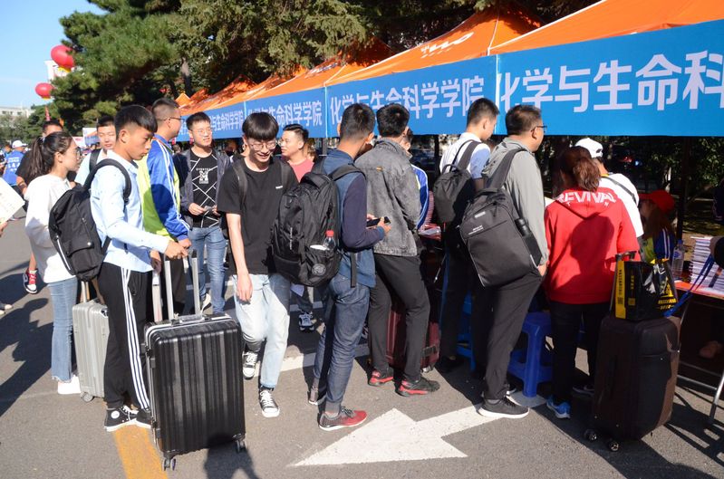 上午6点,迎新工作便如火如荼的展开,到处都是忙碌的身影。一张张热情的笑脸,一句句亲切的问候,一项项贴心的服务,欢迎着来自祖国各地的莘莘学子。院团委、学生会的学长学姐们细致耐心地为各位新生和各位家长解释他们提出的各种问题,志愿者们有条不紊的指导新生完成报道程序。学长学姐们和蔼的笑脸、热情周到的服务很快消除了新生们初来乍到的陌生感,促进同学们快速的融入化生学院这个大家庭。