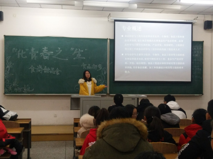 主讲人隋雨宏向食品专业 18级全体同学介绍了食品专业的概况,主学课程,专业培养目标,就业前景以及可从事职业,最后还向同学们进行了考研推荐。讲座中精美的 PPT以及隋雨宏精彩的讲述得到了同学们的充分认可。讲座中实验食品的样例的展示是整个讲座最精彩的部分之一,虽然只是展示了图片,但依然能感受到美食扑人的香味。考研推荐部分也是同样精彩的部分,不仅有考研进一步深造专业的介绍,也食品专业顶尖院校的推荐,江南大学便是重点推荐院校之一。