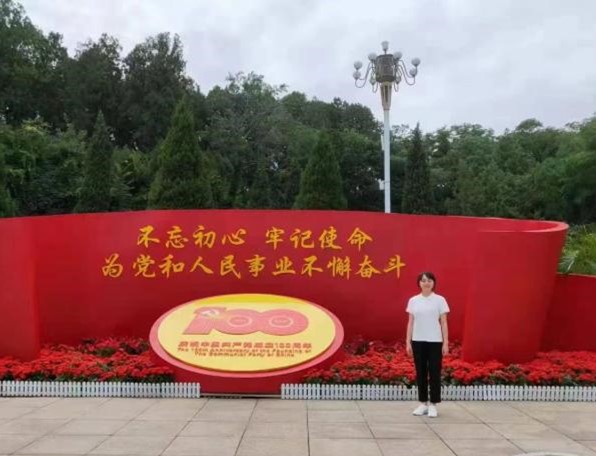 “不论学习还是工作,都要面向实际、深入实践,实践出真知”。2021年7月,恰逢中国共产党建党一百周年,她有幸参加学校组织的“优秀大学生党史学习教育实践研学班”,与老师同学们一起实地参观学习,领会“西柏坡精神”,牢记“两个务必”。作为新时代青年,要坚定理想信念,练就过硬本领,勇于创新创造,矢志艰苦奋斗,锤炼高尚品格,在实现中国梦的生动实践中放飞青春梦想,在为人民利益的不懈奋斗中书写人生华章。通过此次学习,她更加深刻了理解建党精神,感受到深深的红色印记。