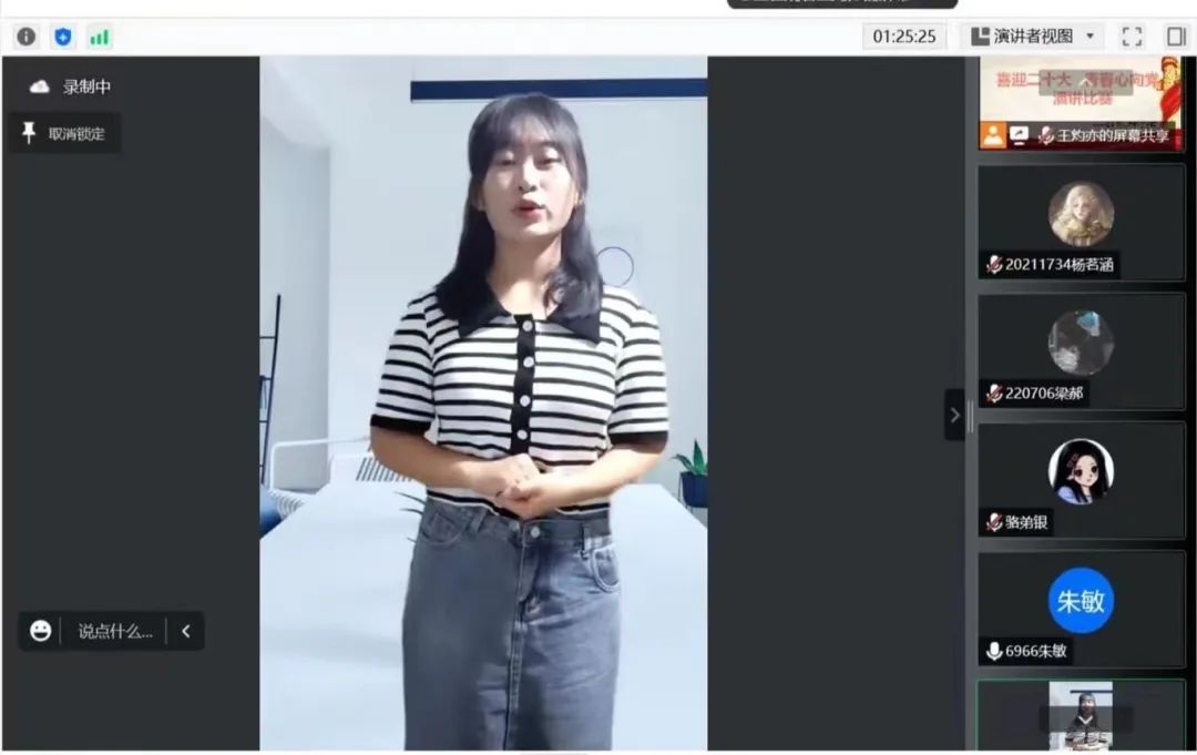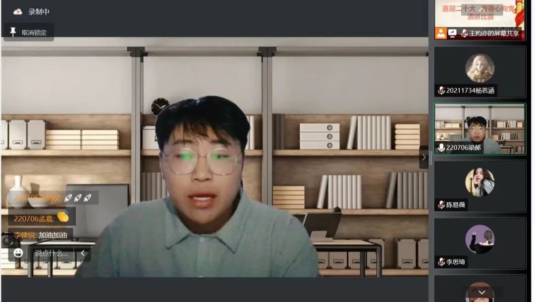 新闻网讯(通讯员 马静了营造活跃和谐的学院文化氛围,积极推动司机社 精神文明建设,展现新生们的良好风貌,厚植爱国主义情怀,司机社 于9月12日举办“喜迎二十大·青春心向党”演讲比赛,本次比赛采取“云演讲”形式,2022届全体同学参加了此次比赛。