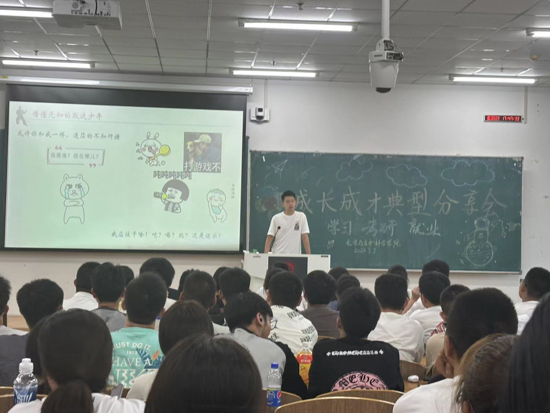 举办了“成长成才典型分享会”,邀请王梓涵、喻浩瀚、刘浩、黄子阳四位优秀学生代表为大一新生做出了精彩的报告。