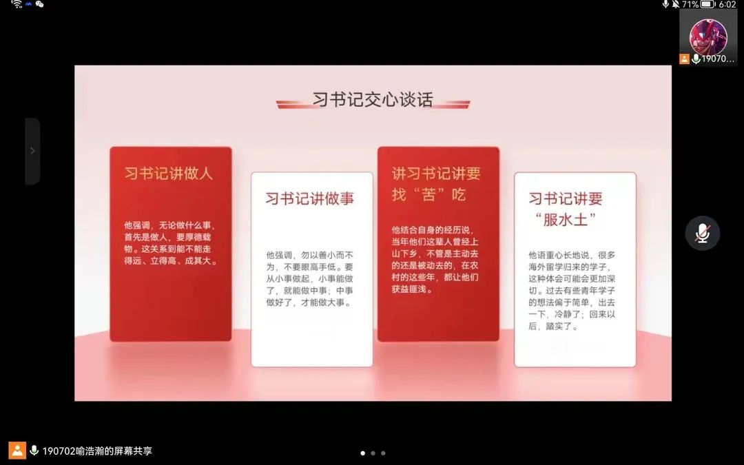 召开《习近平与大学生朋友们》线上学习分享会议