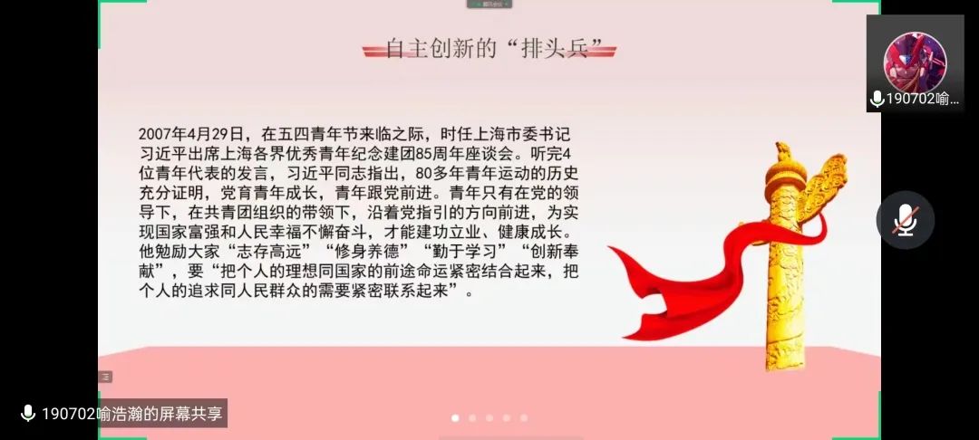 于5月30日,通过网络会议的形式就《习近平与大学生朋友们》专题召开了交流分享会议,全体团委学生参与了此次会议。