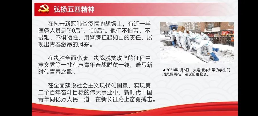 新闻网讯(通讯员 杨芷若)按照上级团组织要求,组织团委工作人员带头学习、交流体会、发出声音,并把学习活动与“五四运动精神"相结合,做到团委工作人员学习全覆盖。司机社