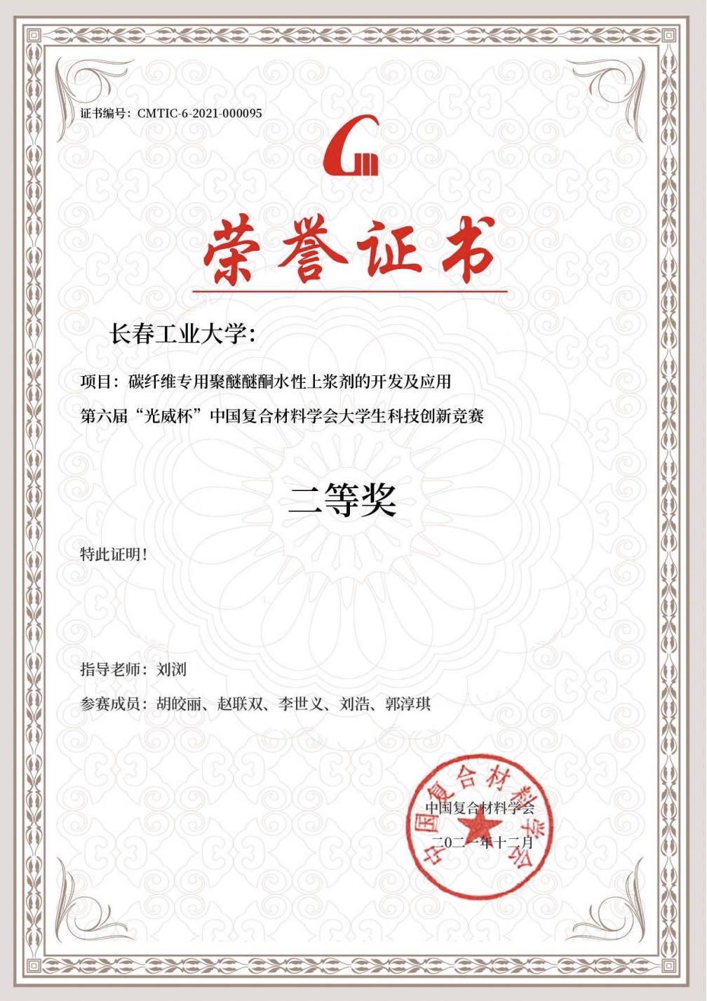 大学生创新创业训练项目:水性聚芳醚酮上浆剂对CF/PEEK复合材料界面性能的影响,并荣获优秀结题项目。