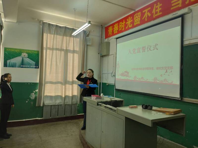 伴随着庄严肃穆的国际歌声,宣誓仪式正式开始。张鹏同志宣读了参加宣誓的预备党员名单。随后,在侯天放同志的带领下,全体新党员进行入党宣誓。面对着党旗,党员们怀着热切而激动的心情,坚定地宣读入党誓词。韩晶鹏同志作为预备党员代表发言时表示,全体预备党员应该做好模范带头作用,积极学习,不断进取,保持党的先进性。时刻以合格党员标准要求自己,努力奋斗,无愧于党和人民。