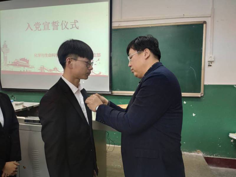 徐秉锋同志为预备党员佩戴党徽并作总结讲话。他代表学院党委,对全体预备党员表示祝贺并同时提出了殷切希望和明确要求。他表示,作为新时代下的高校学生党员,需做到时常反思总结,不断学习,积极进取,提高自身修养,增强“四个意识”,坚定 “四个自信”,培养创新意识,取得更加优秀的成绩!
