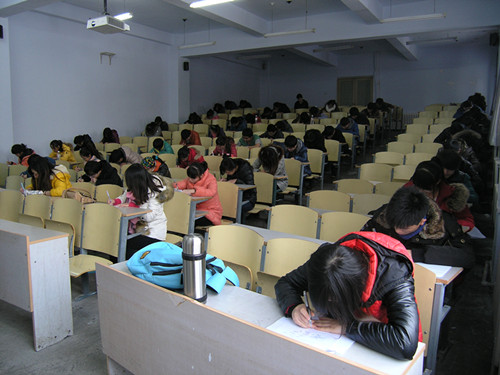 于12月20号12时在电教一楼举行了入党积极分子理论考试。学院团委副书记冯雨晴,社联主席杨帅莅临考试现场。
