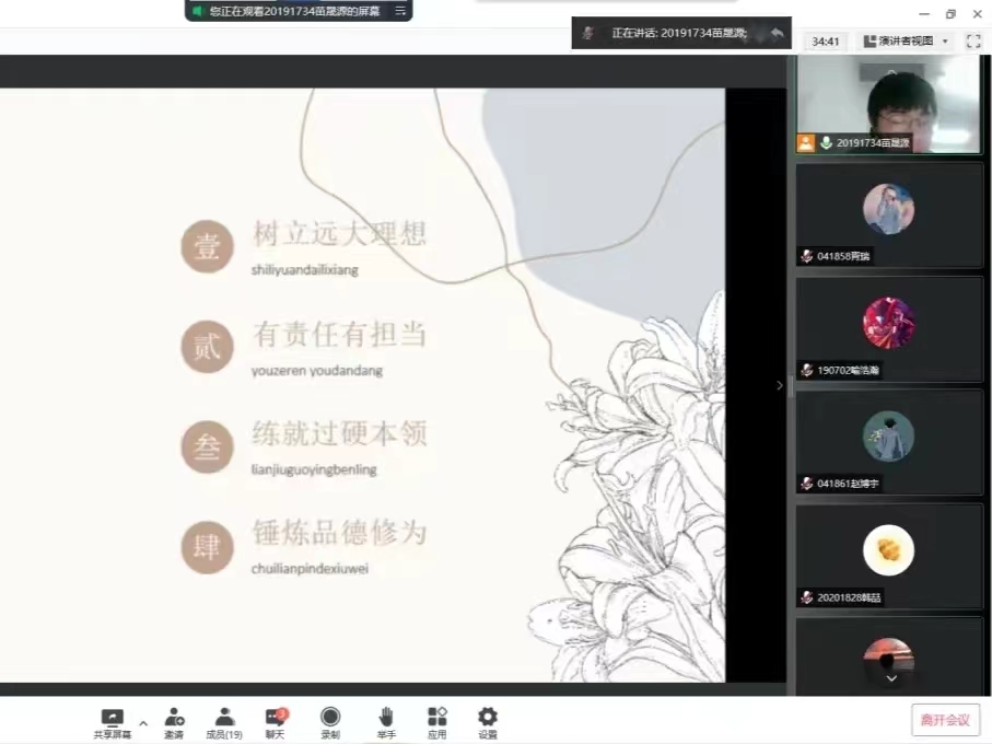 学生会于4月30日开展了以“以青春之名,传承五四精神”为主题的线上交流学习活动,学生会全体成员积极参与此次学习活动,并展开了热烈讨论。
