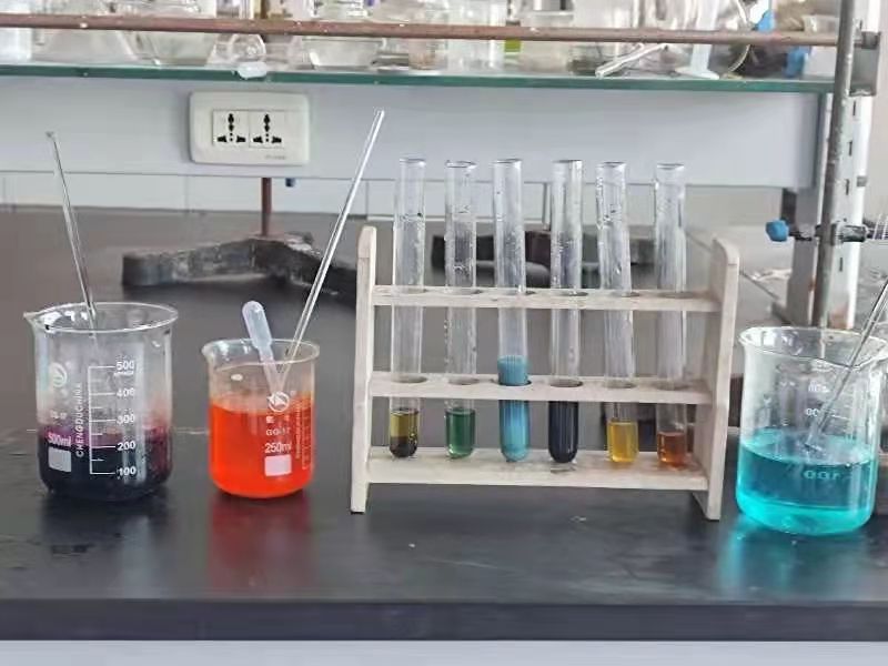 实验开始之前同学们认真学习了实验室的安全规则、注意事项以及实验步骤、实验原理等,评委老师还要求同学们一定要严格遵守实验室规章制度以保证自己和他人的安全。实验过程中,各参赛选手谨慎操作,注意用品用量,最后实验试液颜色异彩纷呈,结果显著。虽然其中有同学的实验并没有完全成功,但他们勇于尝试,及时总结改正错误的精神也是值得赞扬的。相信同学们在此次实验中收获了很多相关知识也愿意继续参与更多这样的实验比赛。