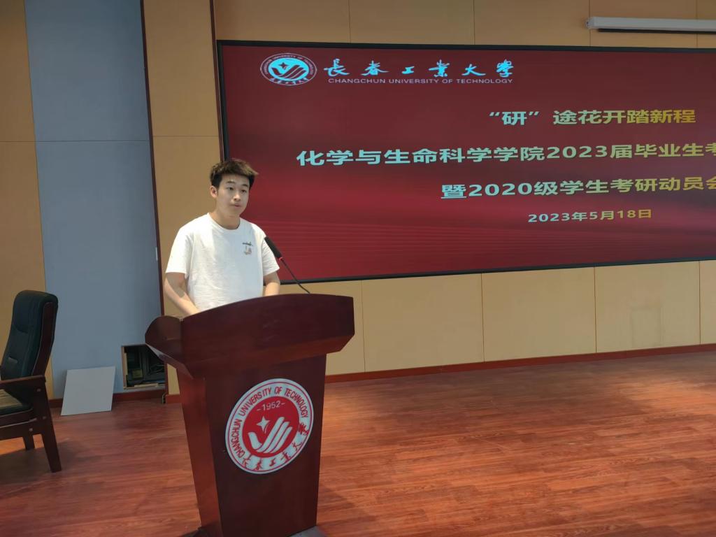 随后,获奖同学代表章振涛上台发言分享考研验。他从考研的必要性、如何选择院校以及如何正确备考三方面给20级同学做出了详细的建议。现场学生表示,会汲取榜样的力量,再接再厉,科学备考,争取“一战成硕”。