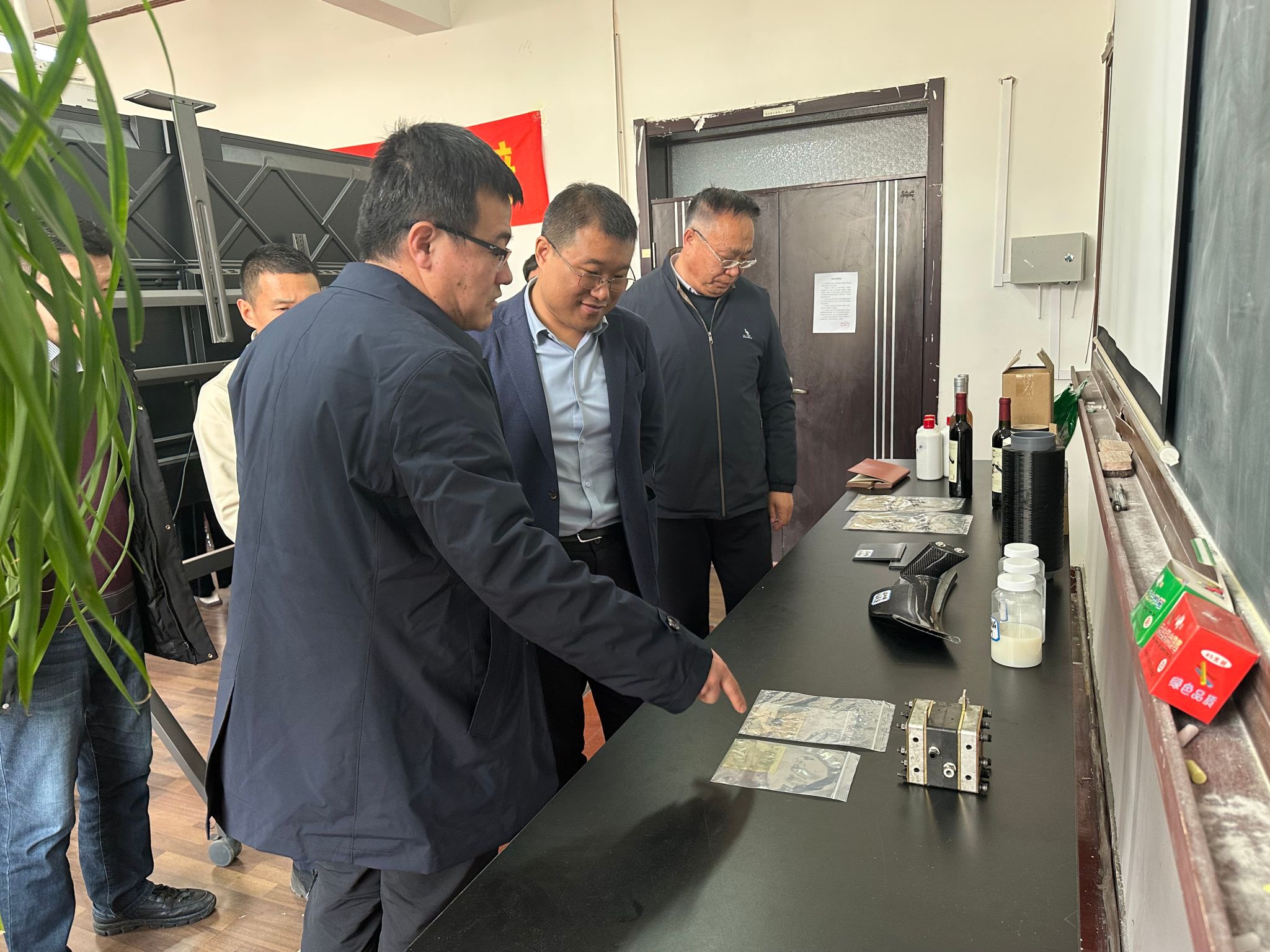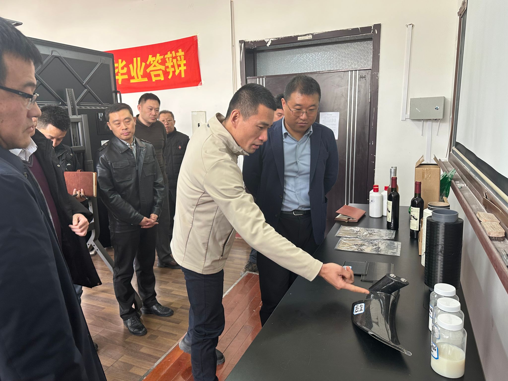 座谈会后,与会人员陪同赵校长参观了学院科研成果样品展示。