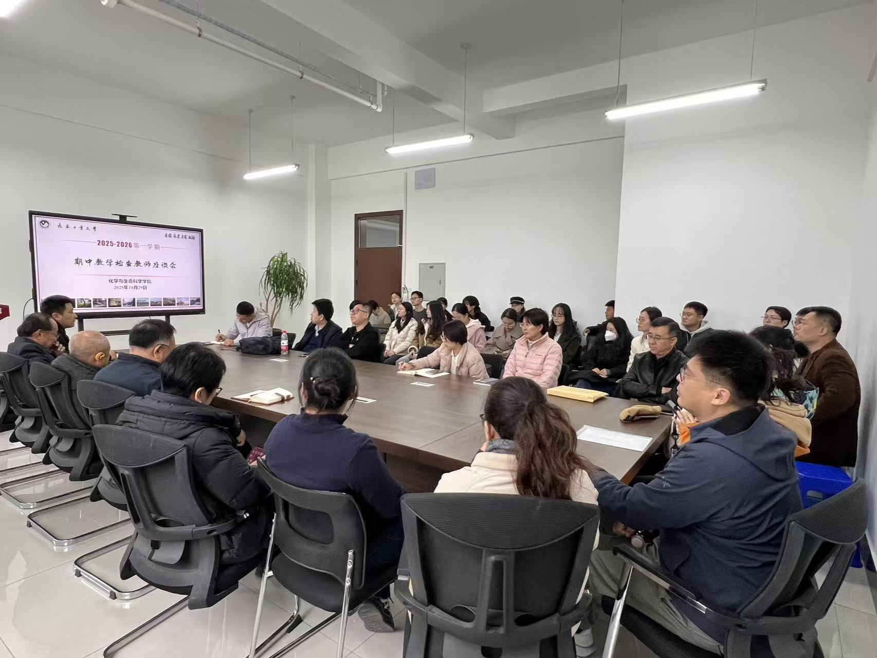召开期中教学教师座谈会。学院党委书记朱兴国、副院长(主持工作)刘宇、各系主任以及本学期全体任课教师齐聚一堂,共话教学发展。