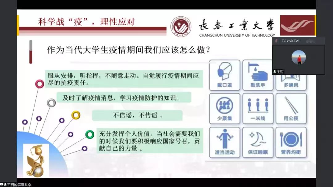 通过此次会议,同学们不仅增强了众志成城抗击疫情的信心和决心,还凝聚了青春共识和责任担当,希望同学们能够把疫情作为自己人生经历的一次磨炼,保持昂扬向上的精神状态,书写最美的青春篇章!
