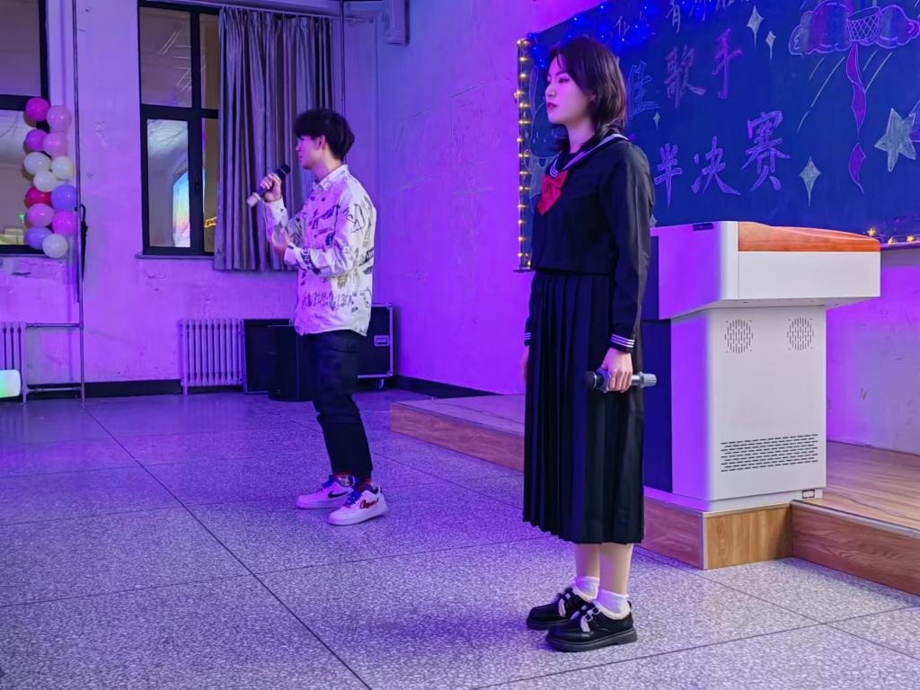此次活动主要分为两个部分一是进入复赛的同学们两两组合演绎一首歌以一支舞蹈拉开活动的序幕20 位同学用他们手中的话筒以歌声的形式在舞台上尽情地展现他们的实力比赛中还穿插了嘉宾表演的精彩节目观众手中的荧光棒跟随音韵一起挥动整个过程高潮迭起二是进入决赛 10 位同学独自演绎他们准备的歌曲他们演绎的动人情歌炫酷说唱清新民谣等歌曲引起观众阵阵惊叹赢得评委的连连赞许经过层层选拔田建元获得一等奖秦子琪王颖婷获得二等奖郑成伶孙艺嘉廖炎佳获得三等奖司机社 同学以他们优美的歌声让这次活动取得圆满成功