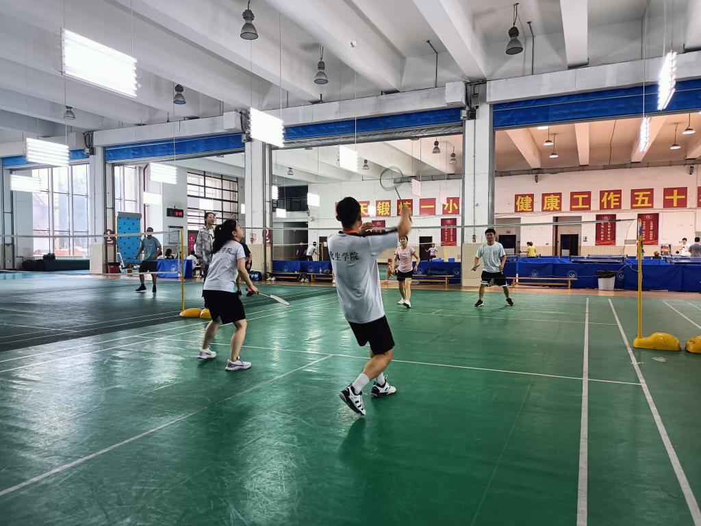 本网讯(通讯员 刘扬)为进一步丰富教职工业余文化生活,更好地营造学院积极向上的良好氛围,7月5日下午,学院分工会组织教职工在南湖校区体育馆举办了“奋斗工大·幸福化生”为主题的羽毛球比赛。