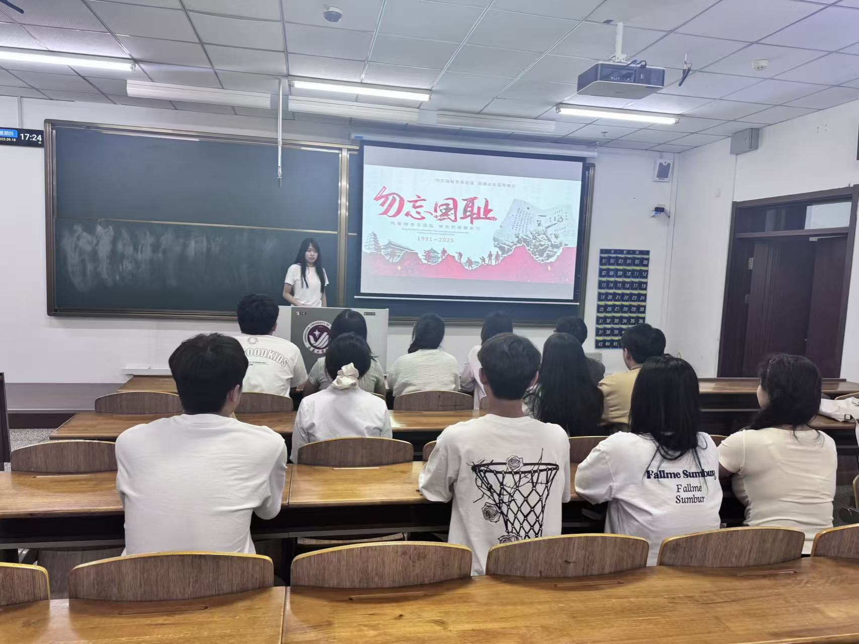 学生党支部组织党员在北湖西区主楼开展了“铭记九一八,勿忘国耻,砥砺奋进”主题党日活动。