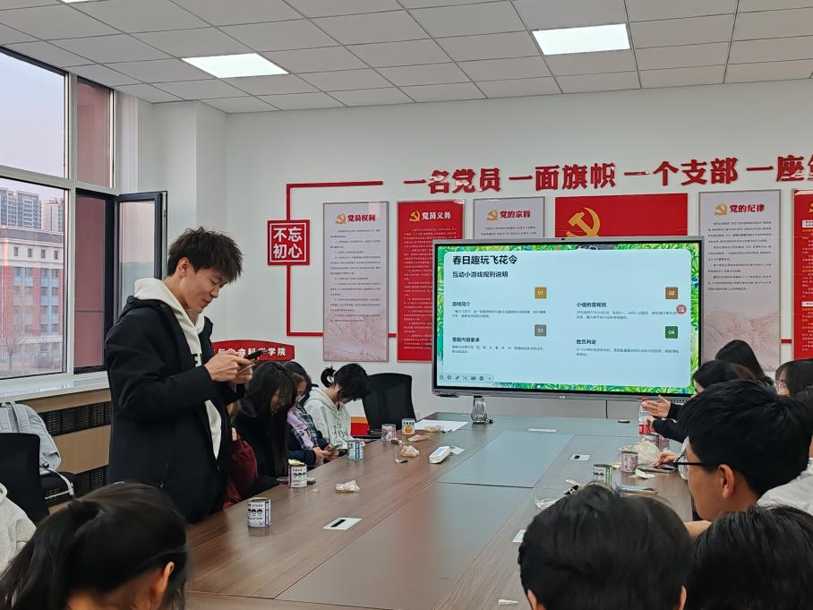 趣味飞花令比赛将活动推向高潮,20名成员分为4组,围绕“花、草、木、春”等植物相关字词,抢答诗句、歌词或成语。现场气氛热烈,大家在知识比拼中释放压力、收获快乐,进一步加深了对春日意象的感知,也增强了社团凝聚力。