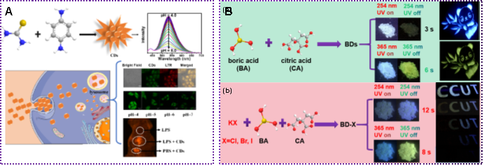2. (A)具有溶酶体靶向功能的碳点基荧光探针用于监测体内、外的pH变化