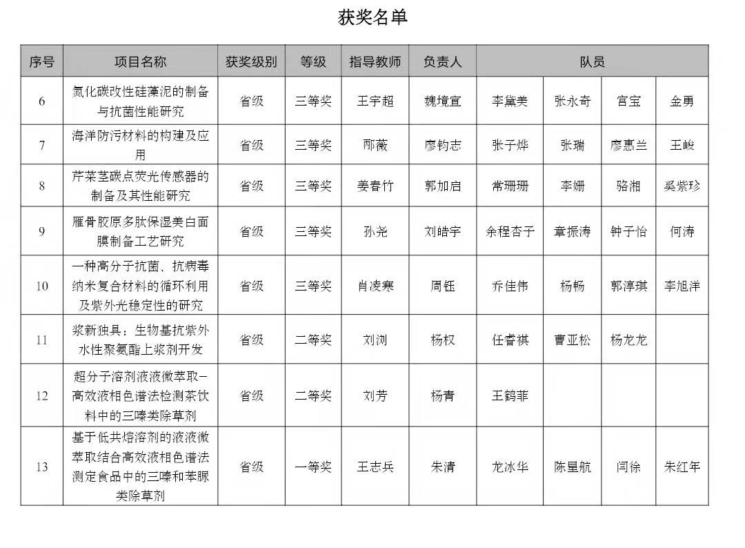 选送的《基于低共熔溶剂的液液微萃取结合高效液相色谱法测定食品中的三嗪和苯脲类除草剂》脱颖而出,获得吉林省一等奖,入围全国总决赛。