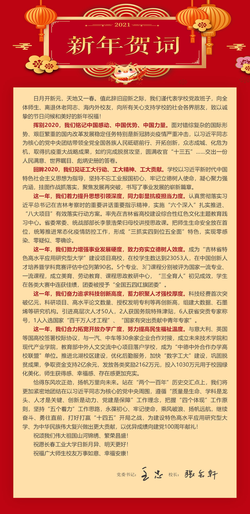 新年贺词:致敬长工大,奋进新百年!
