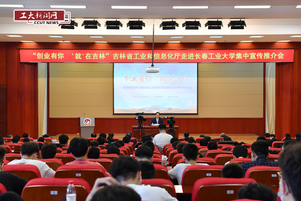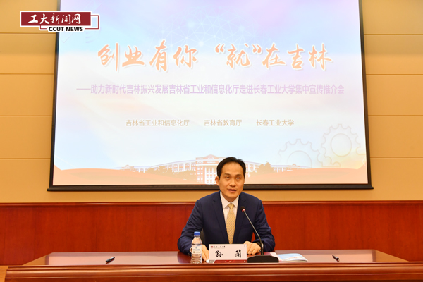 的办学成果和对吉林省工业经济发展的重要贡献,系统介绍了吉林省工业和信息化厅的主要工作职能、吉林省工业经济发展情况、吉林省围绕高校毕业生就业创业而制定的相关优惠条件及吉林省工业和信息化厅围绕大学生创业就业开展的创业载体建设、创业及技能人才培训和创新创业服务等一系列工作举措。他指出,吉林省工业现已形成以汽车、石化、农产品加工等为支柱产业,以装备、医药、冶金建材、电子信息等为优势产业,以节能与新能源汽车、先进轨道交通装备、生物医药及高性能医疗器械、卫星及通用航空、精密仪器与装备、CMOS等新一代信息技术、新材料为新兴产业的相互支撑、竞相发展的产业格局。多年来,工业经济一直保持稳定增长态势,为吉林经济社会发展提供了强大助力。他希望广大同学们积极投身于吉林工业经济建设中,在新时代吉林振兴发展中建功立业,以巨大的勇气、耐心和意志,赢得自己、赢得吉林、赢得中国社会的未来。
