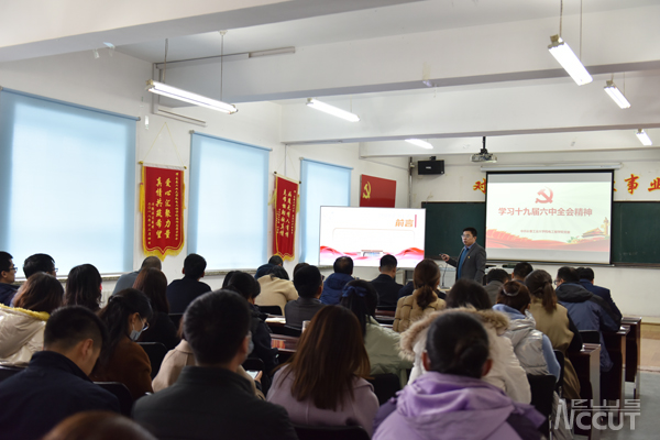 新闻网讯(记者 杨婉琦)按照学校党委统一部署,11月17日下午,各基层党组织围绕学习贯彻十九届六中全会精神开展了多种形式的学习活动,不断深化干部师生对全会精神的政治认同思想认同情感认同,凝聚了干部师生干事创业的强大力量。