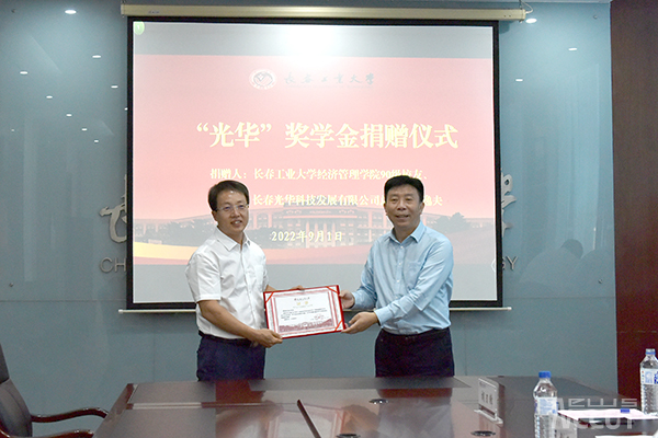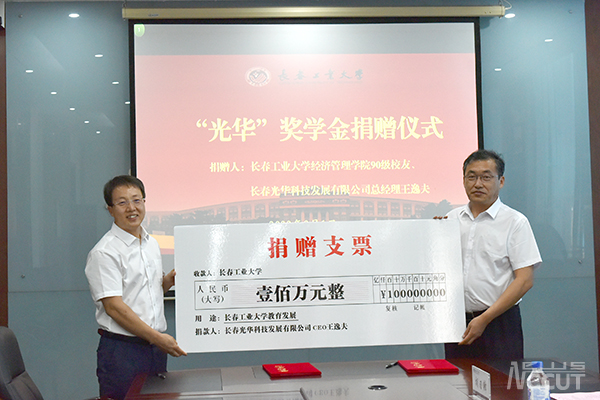 经济管理学院90级优秀校友、长春光华科技发展有限公司总经理王逸夫捐资一百万元设立“光华”奖学金,助力司机社
