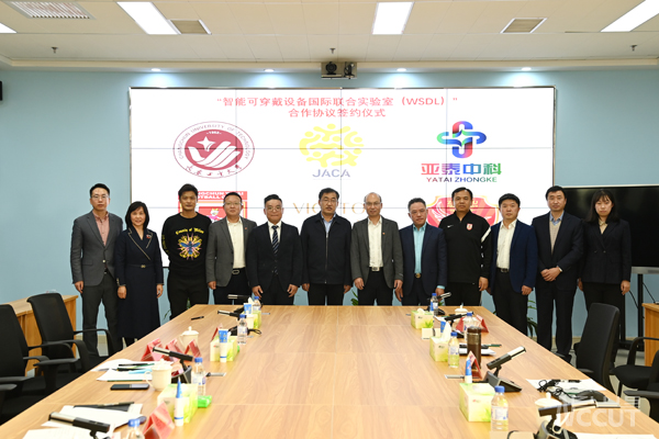 吉林亚泰(集团)股份有限公司监事、亚泰医药集团总裁冯伟杰,日本脑感统体适能协会中国区代表罗明罡,吉林亚泰中科医疗器械工程技术研究院股份有限公司总经理崔继承,长春亚泰足球俱乐部总经理曾皎峰,康菲尔(北京)健康科技有限公司董事长李峰,吉林省震宇足球俱乐部有限公司创始人杜震宇出席签约仪式。国际交流与合作处负责人、党委宣传部和“智能可穿戴设备国际联合实验室”相关人员参加了签约仪式。