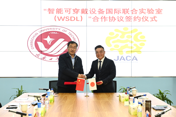 新闻网讯(通讯员 褚明利)10月25日下午,学校与日本脑感统体适能协会、吉林亚泰中科医疗器械工程技术研究院股份有限公司、长春亚泰足球俱乐部、康菲尔(北京)健康科技有限公司和吉林省震宇足球俱乐部有限公司联合成立“智能可穿戴设备国际联合实验室”签约仪式在长春(中韩)国际合作示范区北药园A01楼五楼会议室举行。校长张明耀出席签约仪式。